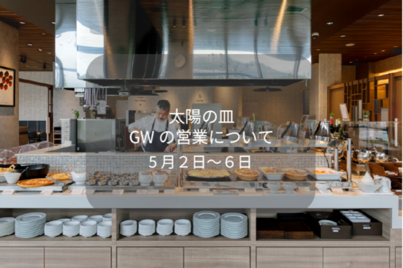 平素より太陽の皿をご利用いただき、誠にありがとうございます。 ゴールデンウィーク期間(5月2日~5月6日)は特別営業期間として、ランチ・ディナービュッフェの営業時間および料金を下記の通り変更させてい...